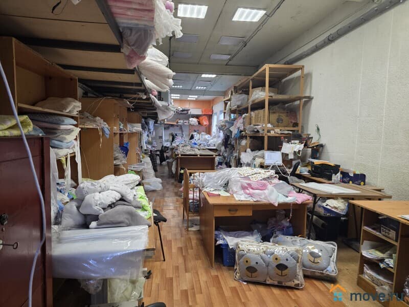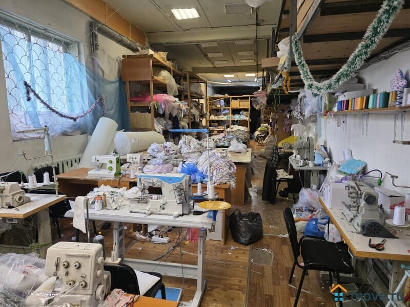 Швейный цех (склад): пол деревянный по старому бетонному основанию, потолок и стены побелка, пластиковые окна.
