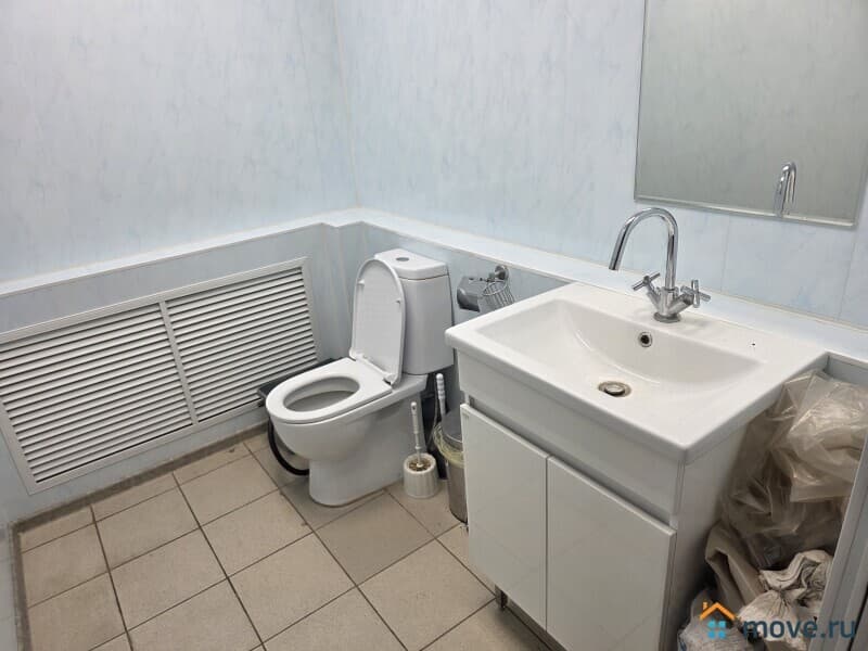 Санузел: пол керамогранит серый, потолок панели, светильники армстронг